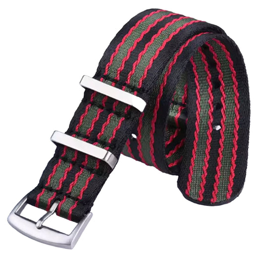 Masar Bracelet Nato 22mm James Bond Noir Rouge Vert - Nylon doux tressé