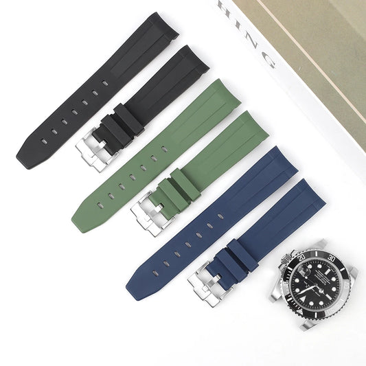 Bracelet de montre en caoutchouc fluoré FKM à extrémité incurvée de 20mm pour Bracelet Rolex pour Bracelet en caoutchouc Omega pour hommes Bracelet de Sport Bracelet de remplacement