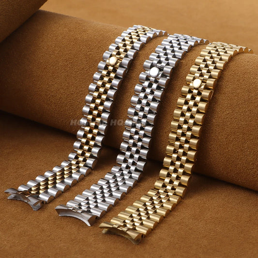Bracelet de montre de luxe en acier inoxydable, 13mm 17mm 20mm 21mm, pour jubilé pour Rolex, extrémité incurvée en métal, Bracelet de remplacement solide
