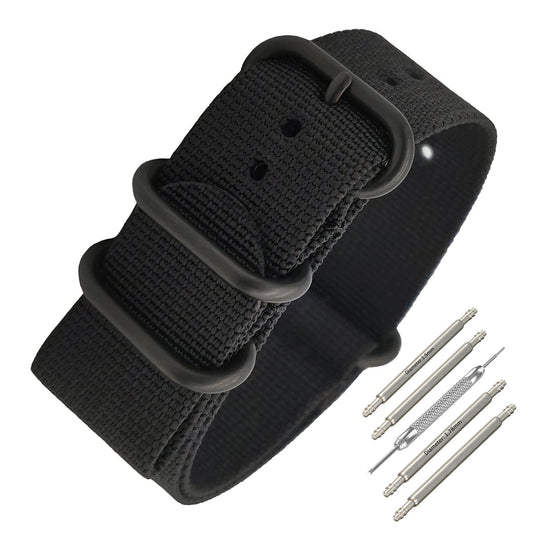 Masar Bracelet Montre ZULU Nylon Full Noir / Boucle Noir - Homme - Raide et épais 2mm