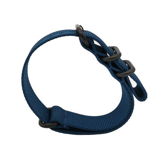 Masar Bracelet Montre ZULU Nylon / Bleu - Boucle Noir – Homme - Raide et épais 2mm