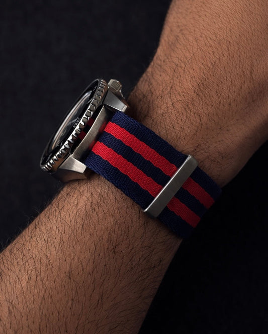 Masar Bracelet Montre NATO Nylon Pepsi Rouge – Bleu - Boucle Satin - Homme