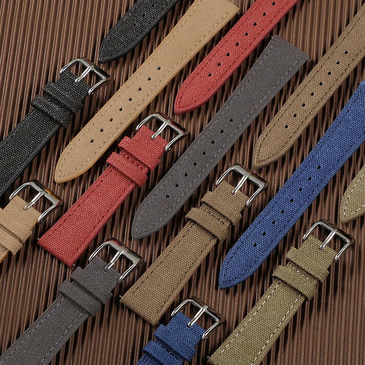 Regular price From €19,78 EURRegular priceUnit price per€0,00 EURSale price From €19,78 EURQuick-release thin canvas watch strap, made of vintage nylon fabric, 20mm 22mm, retro style, men's belt accessories