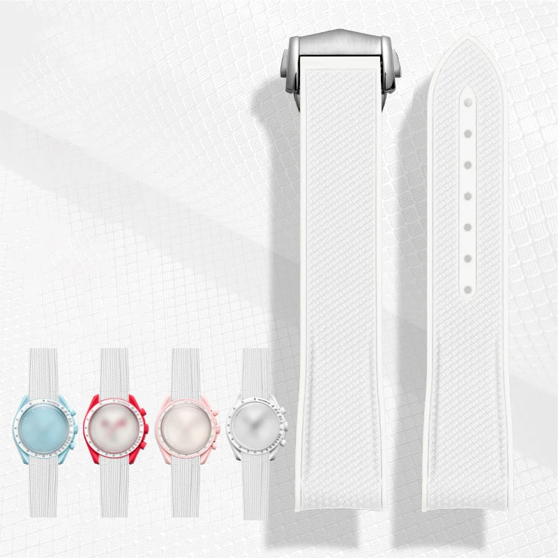 White rubber watch strap for Omega X Swatch, MoonSwatch, Constellation, waterproof, sport, watch band, curved end band, 20mm