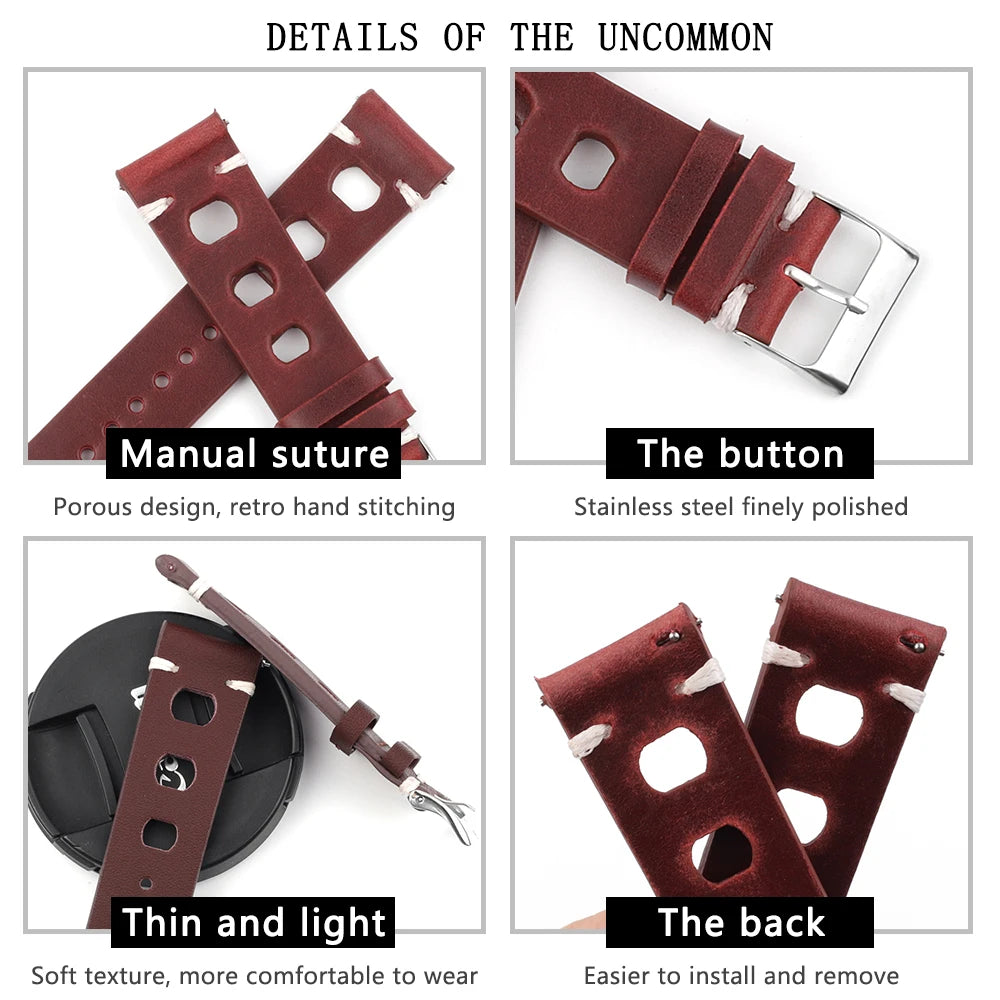 Leather watch strap, Fast - Vintage, Chronograph - Universal