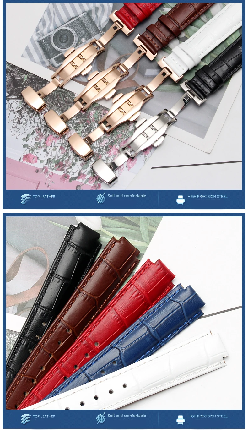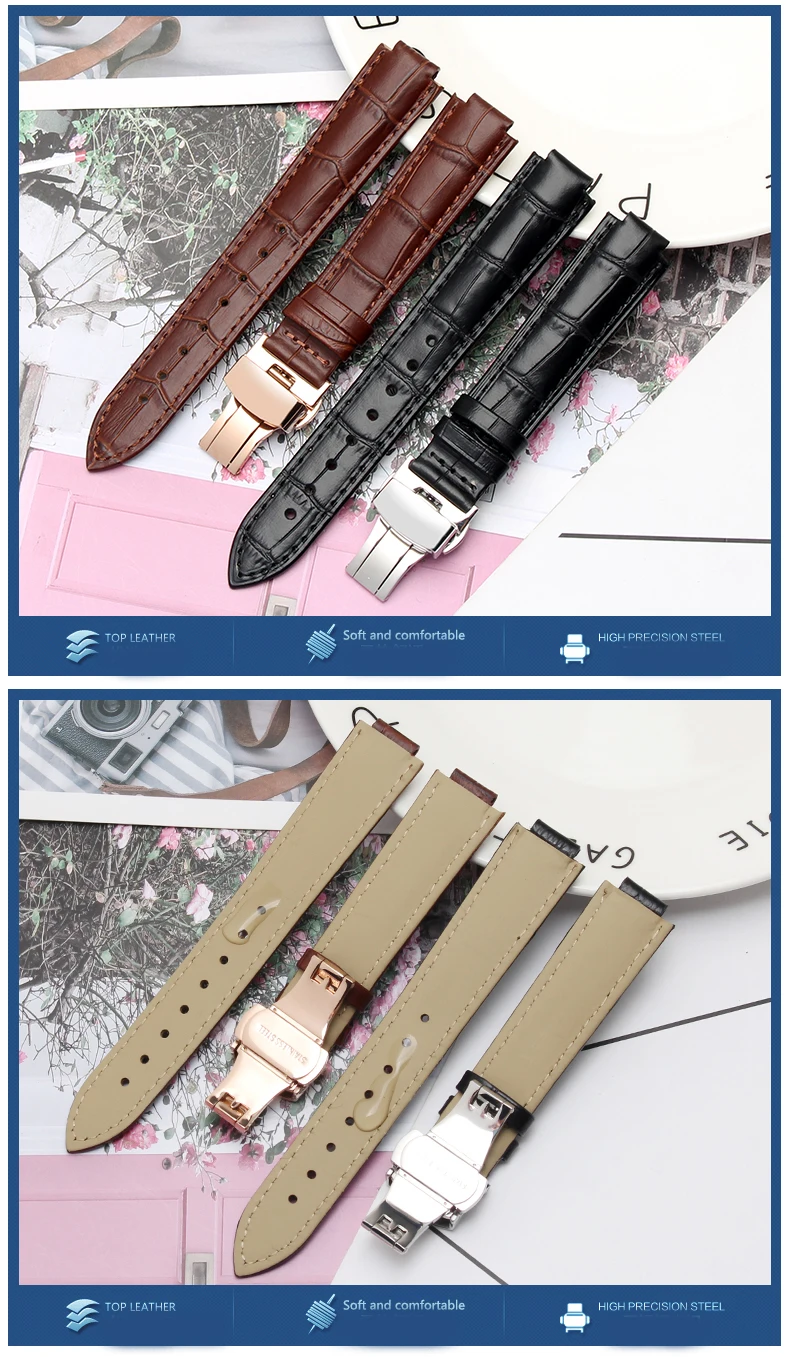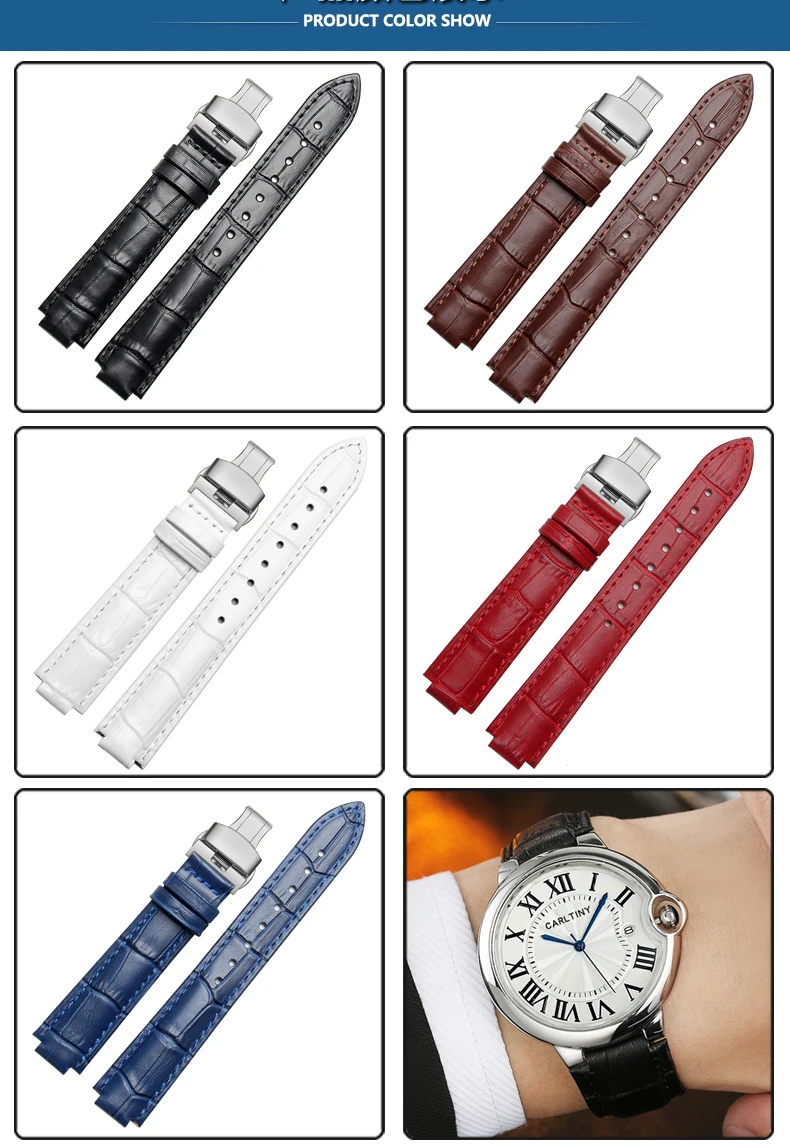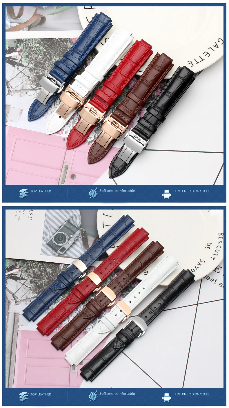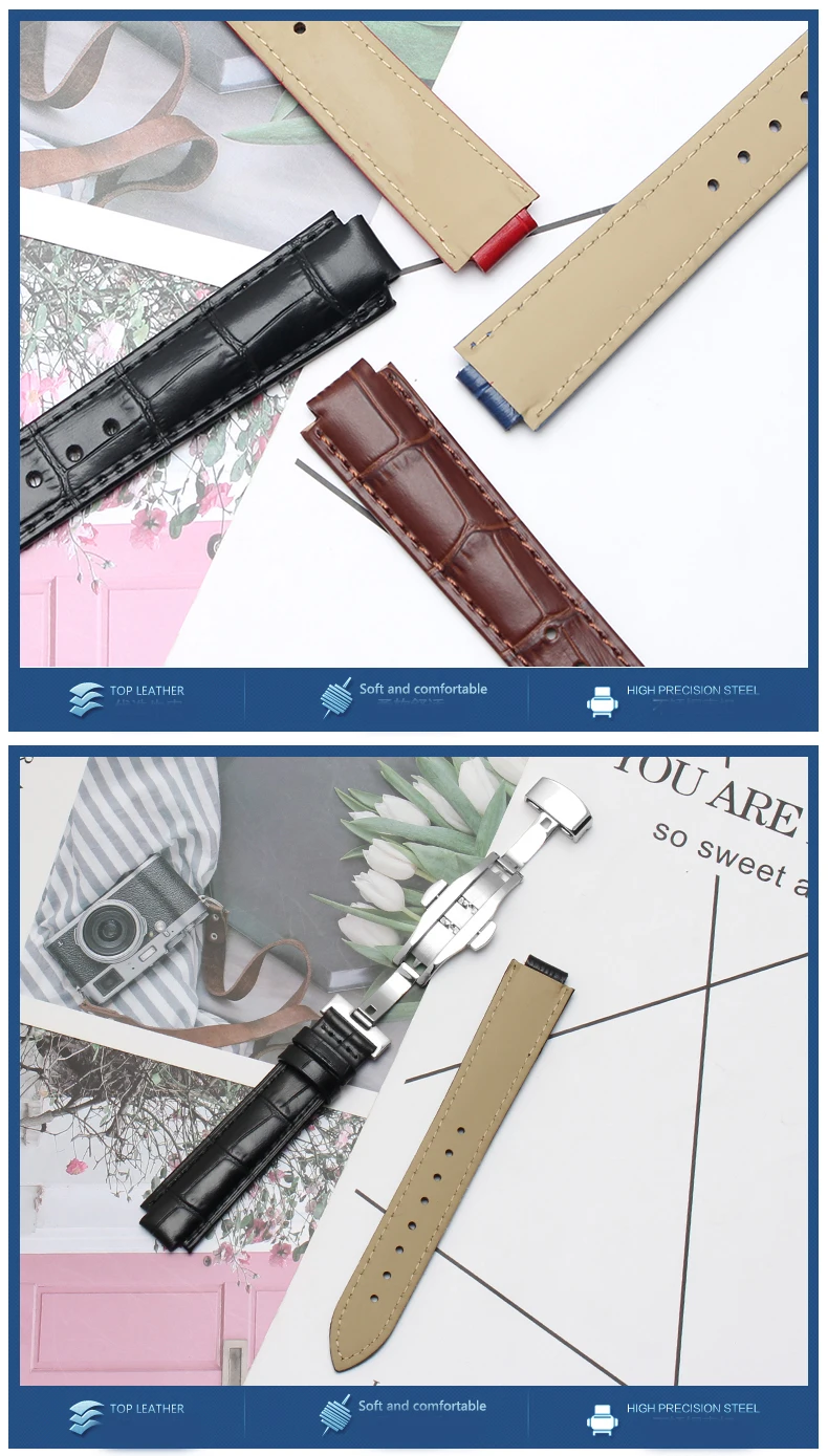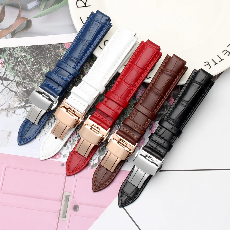 Bracelet de montre en cuir véritable pour ceinture à bouche convexe, 14x8mm, 16x8mm, 18x11mm, 20mm, accessoires de montre