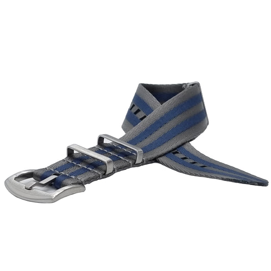 Masar - Correa de reloj de nailon NATO gris/azul/hebilla cepillada - Suave - Hombre