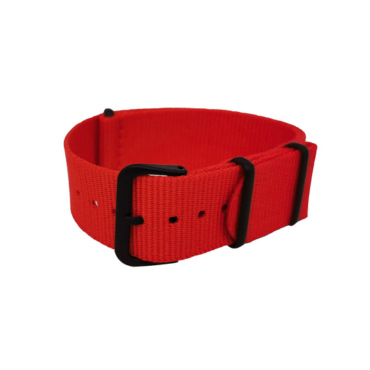 Correa de nailon suave NATO Masar de 16 mm - Hebilla roja/negra - Suave - Ligera - Relojes para hombre y mujer - Grosor de 1 mm