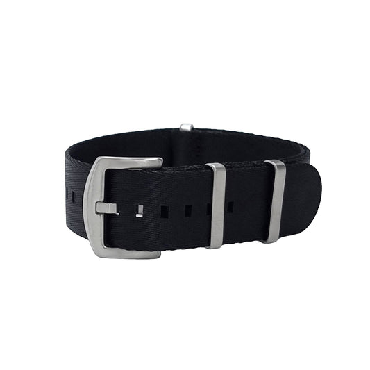 Correa de reloj Masar de nailon NATO para hombre, negra/hebilla satinada, suave