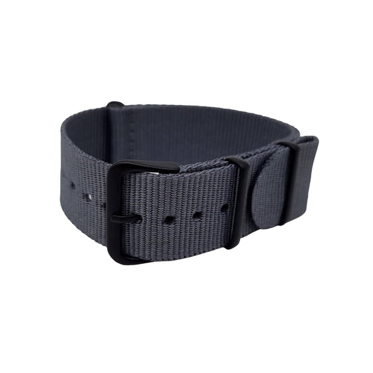Correa Masar NATO de 22 mm de nailon gris oscuro/hebilla negra - Suave - Relojes ligeros para hombre y mujer - Grosor: 1 mm