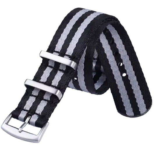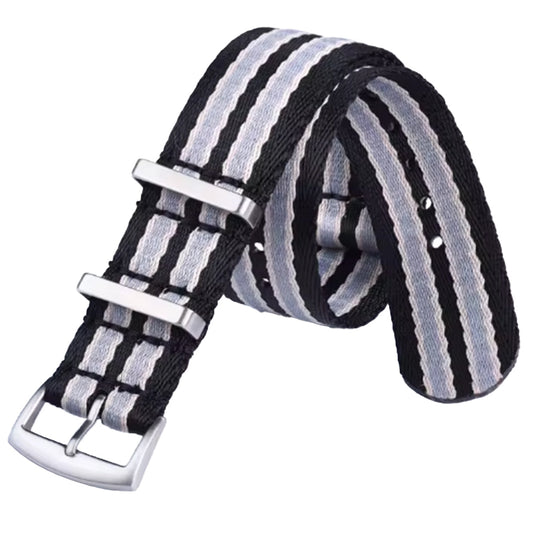 Correa Masar Nato de 22 mm James Bond, color negro y gris claro - Nailon trenzado suave