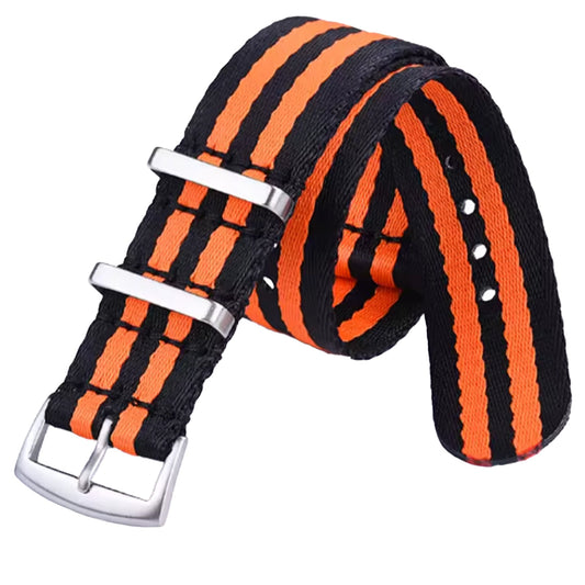 Correa Masar Nato de 22 mm, color negro y naranja, 2 bandas, nailon trenzado suave