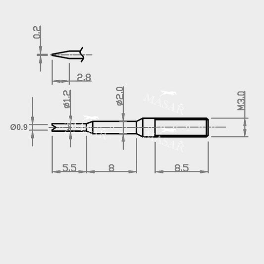 Bomba suiza Masar, vástago de reloj, XTS Ø 1,8 mm - Acero inoxidable 316L - 2 unidades