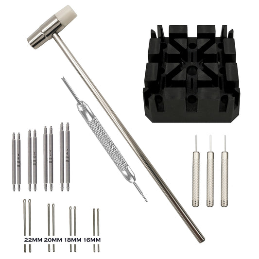 Kit pompa per orologi Masar - 22 pezzi con stelo, barra, perni e strumenti per la riparazione e la regolazione del cinturino dell'orologio