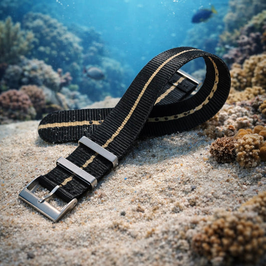 Masar Bracelet montre Nato Nylon Noir / Khaki (Sable) - 1 Bande