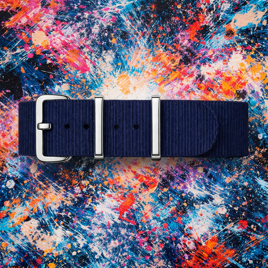 Cinturino per orologio NATO blu navy scuro / Fibbia in argento lucidato a specchio