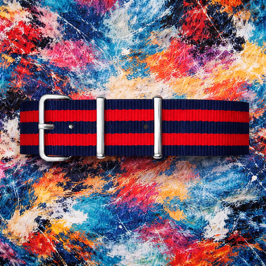 Prezzo di listino €24,95 EURPrezzo di listinoPrezzo unitario perPrezzo scontato €24,95 EURCinturino per orologio NATO in nylon blu-bianco-rosso Masar Canterbury - Fibbia in oro rosa