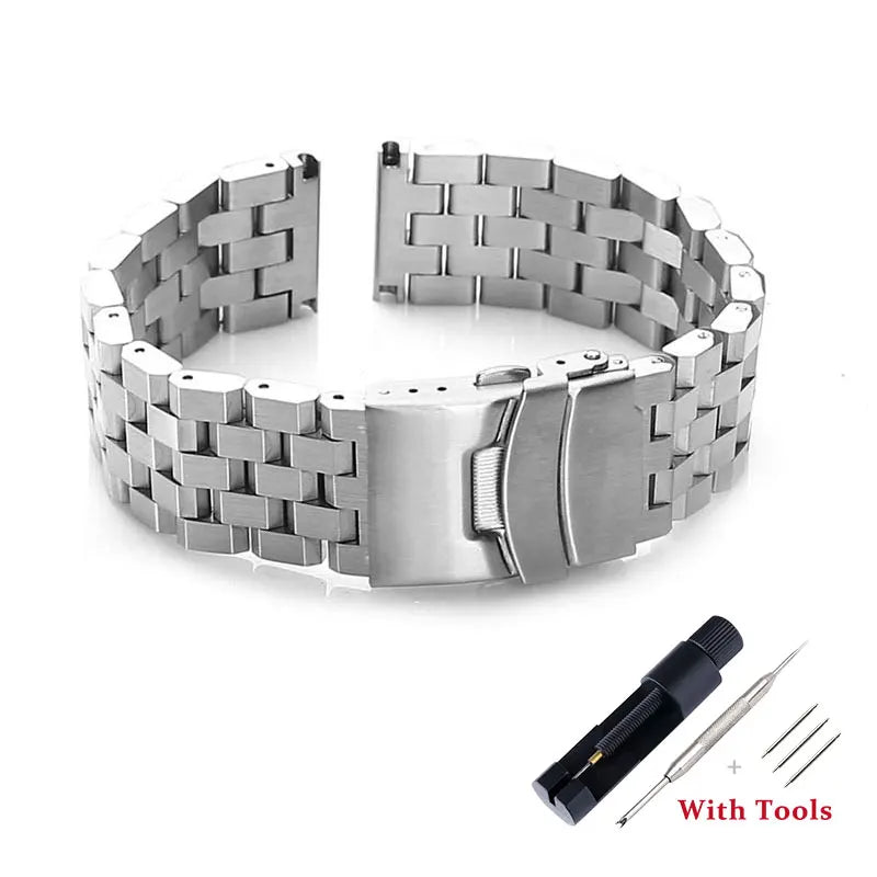 Cinturini per orologi con interfaccia piatta in acciaio inossidabile massiccio di alta qualità da 18 mm, 20 mm, 22 mm, 24 mm, 26 mm, con strumenti