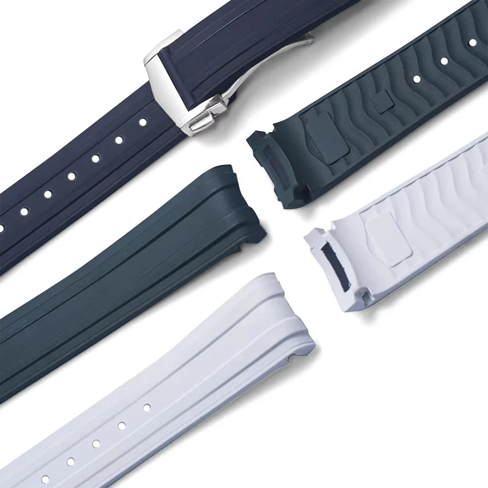 Cinturino per orologio in gomma fluorocarbonica, fibbia pieghevole da 20 mm, estremità curva per Omega X, Swatch Seamaster 300, Speedmaster, accessori FKM