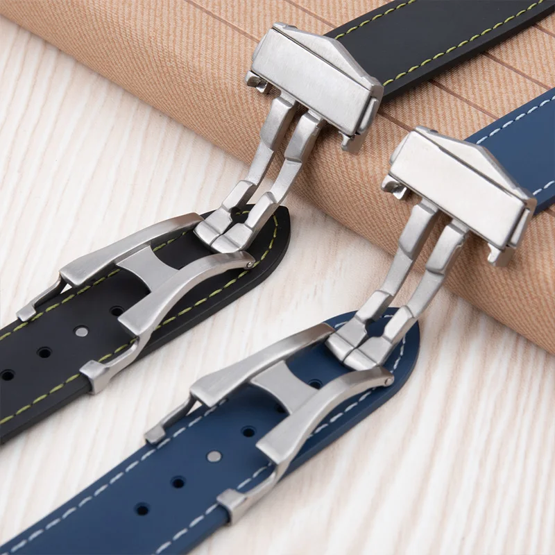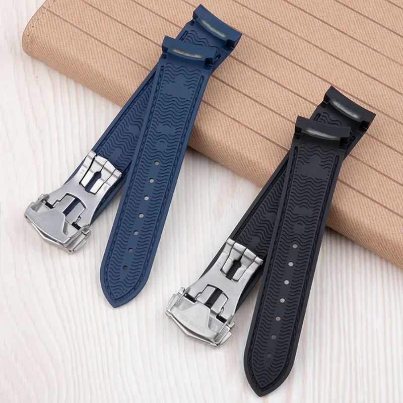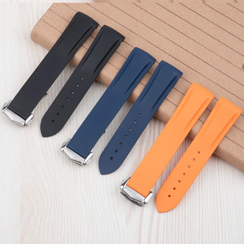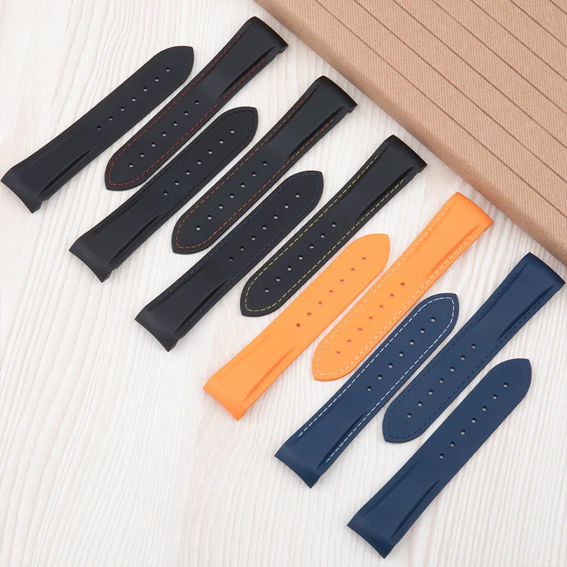 Cinturino per orologio in gomma fluorurata FKM, 19/20/21/22 mm, estremità curva, per bracciali Omega 300, Seamaster 600, Planet Ocean e Speedmaster