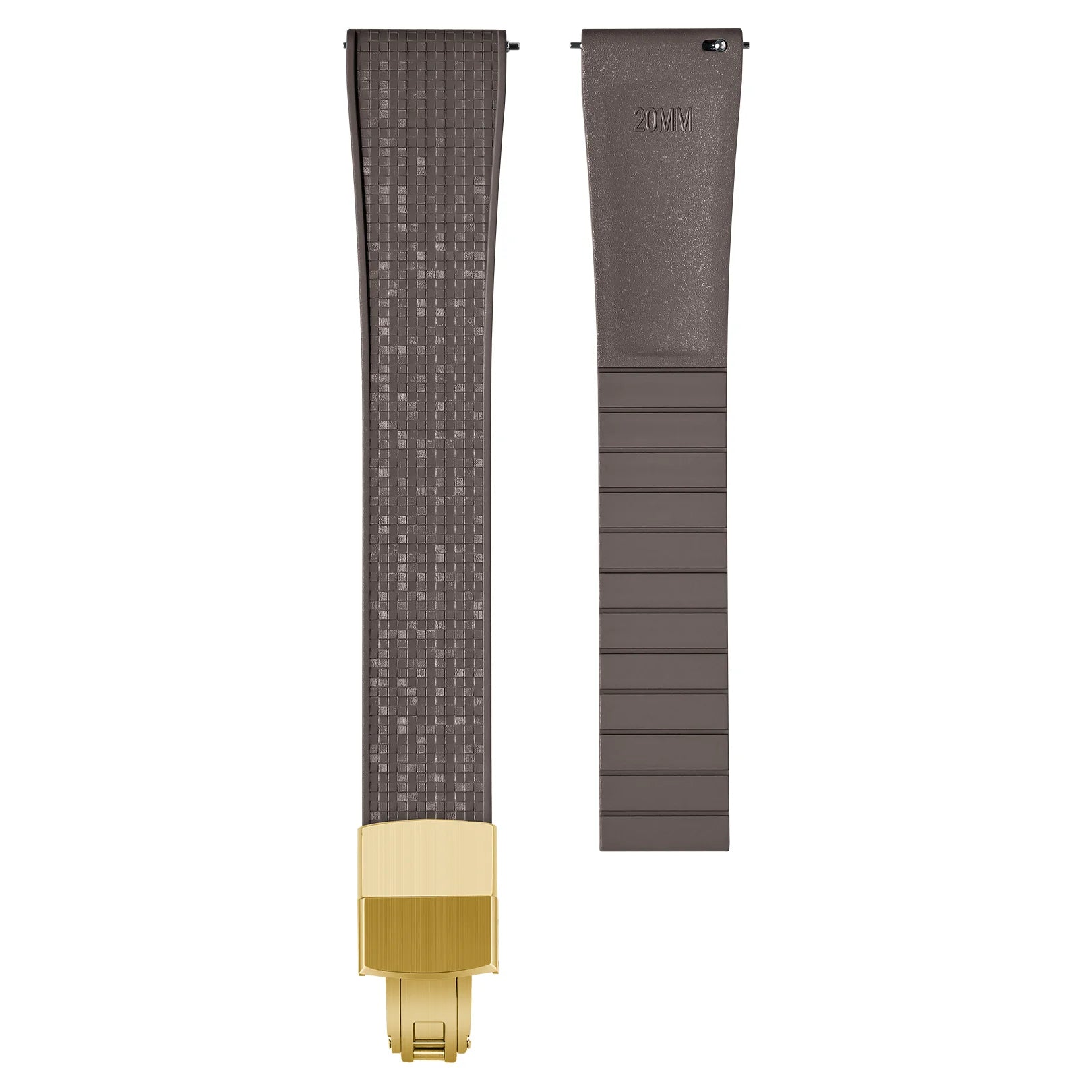 Scegli un cinturino in caucciù FKM CTS Delugs con un design a scacchiera : moderno, elegante e comodo da indossare. Progettato per resistere all'uso quotidiano, offre un comfort eccellente al polso ed è adatto a molti orologi grazie alle sue larghezze disponibili di 18/19/20/21/22 mm .