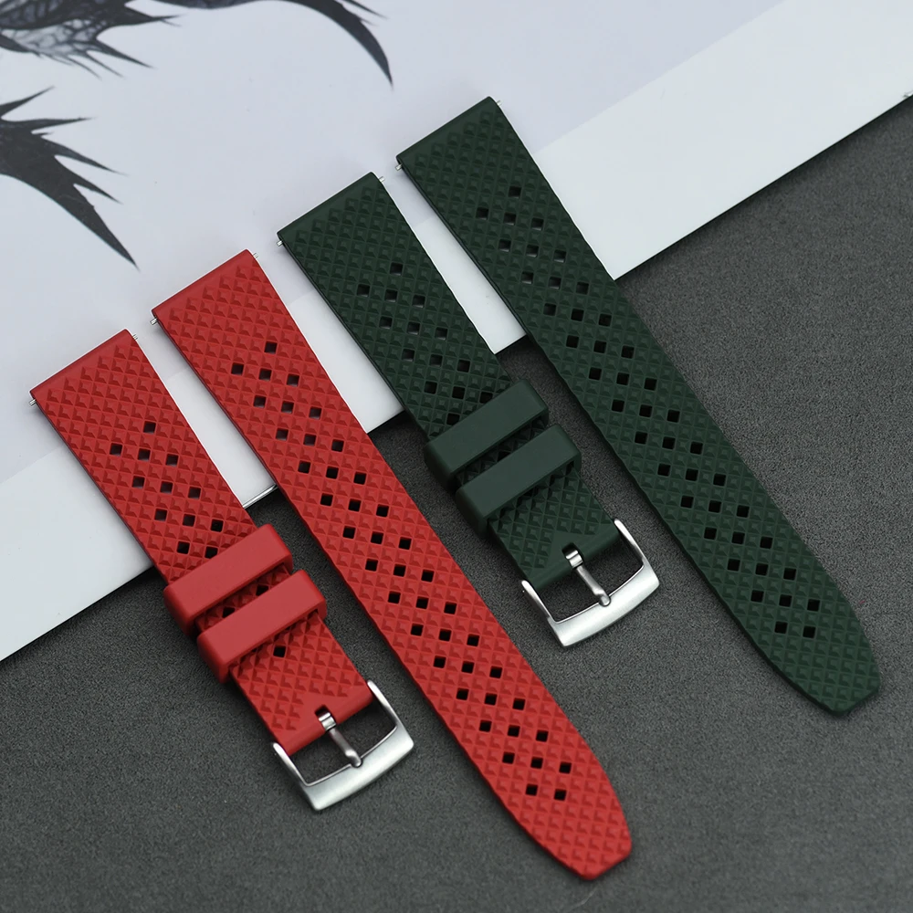 Per : cinturini per orologi in gomma fluorurata, cinturini per orologi a sgancio rapido, non aspirano la polvere, cinturini per orologi in FMK vulcanizzato, cinturini in gomma fluorurata, impermeabili/per immersioni, cinturini per orologi traspiranti