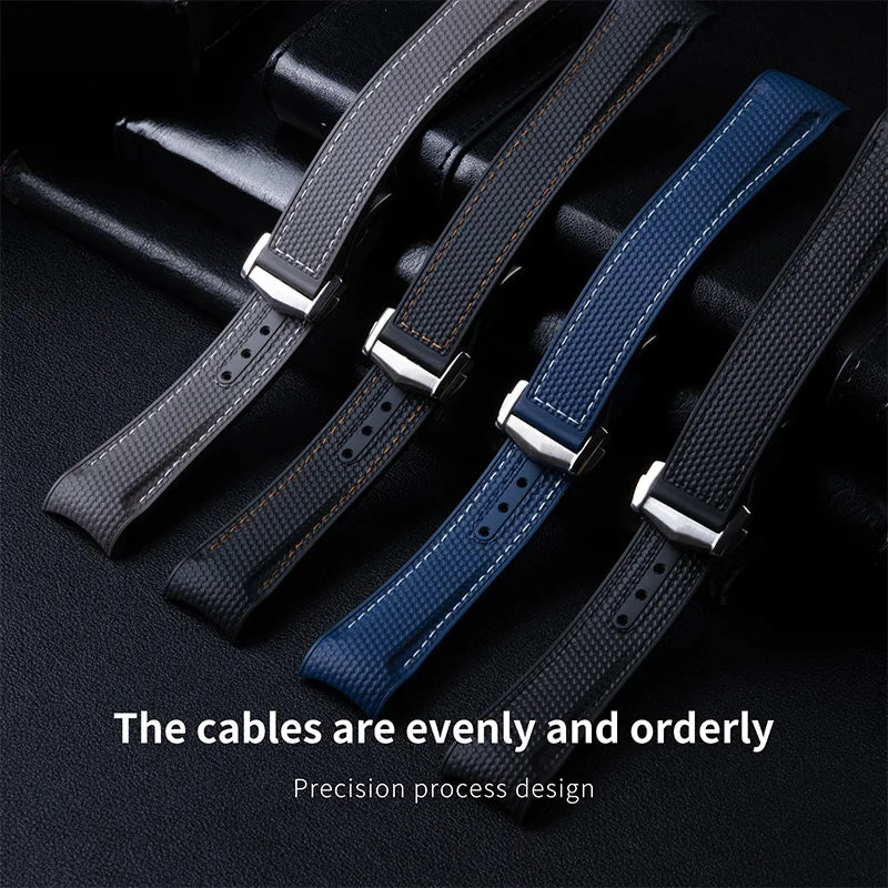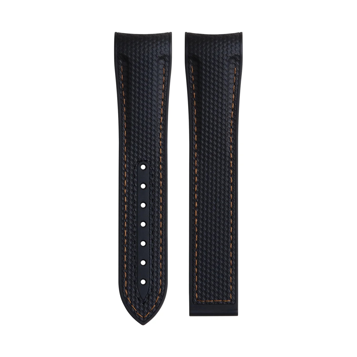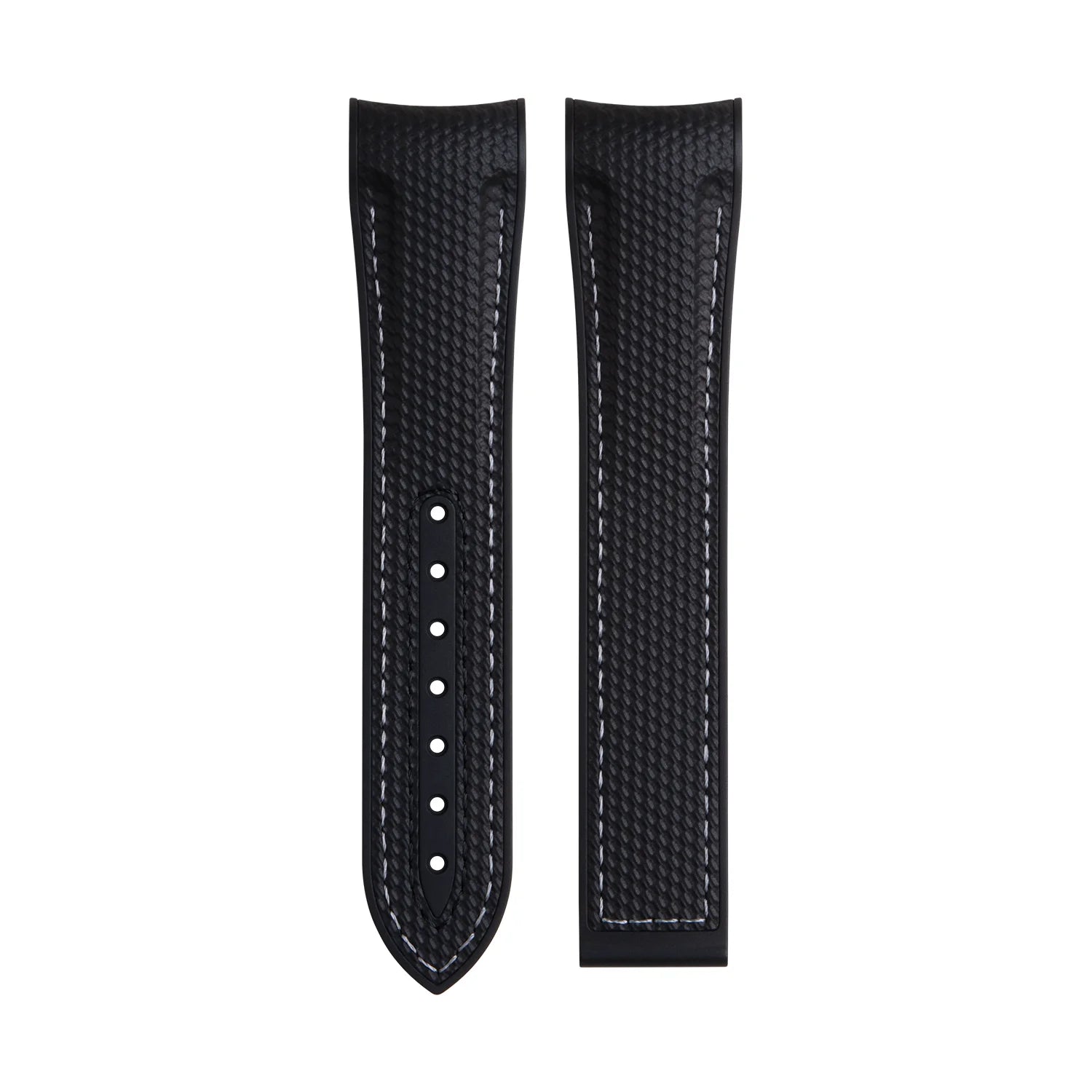 Cinturino universale in gomma con estremità curva, 21 mm FKM, trama in gomma con rivestimento in fluoro, per cinturini Omega Planet Ocean 600 e Speedmaster AT15
