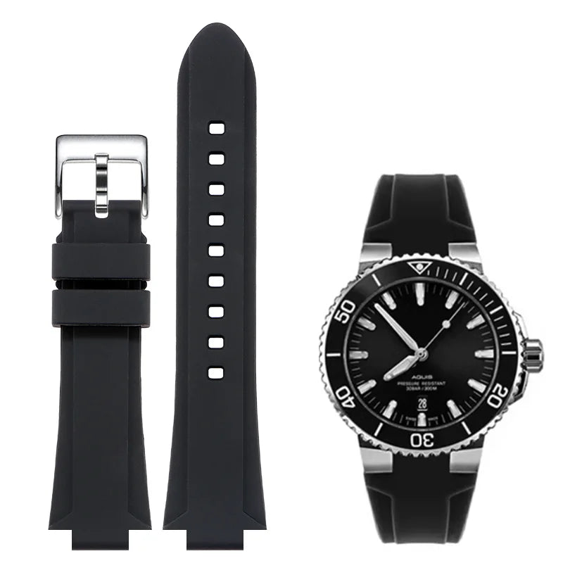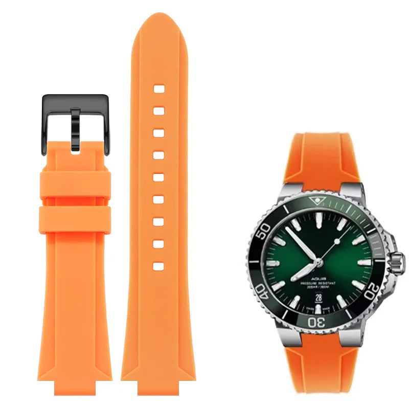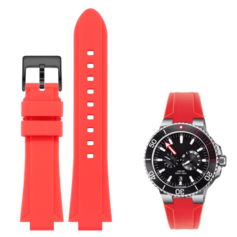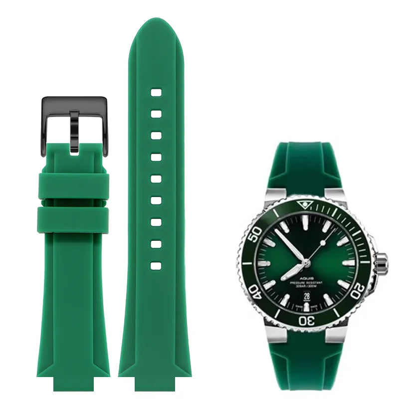 Cinturino in gomma siliconica con interfaccia convessa 24*11 per orologio subacqueo ORIS AQUIS, cinturino impermeabile con fibbia pieghevole