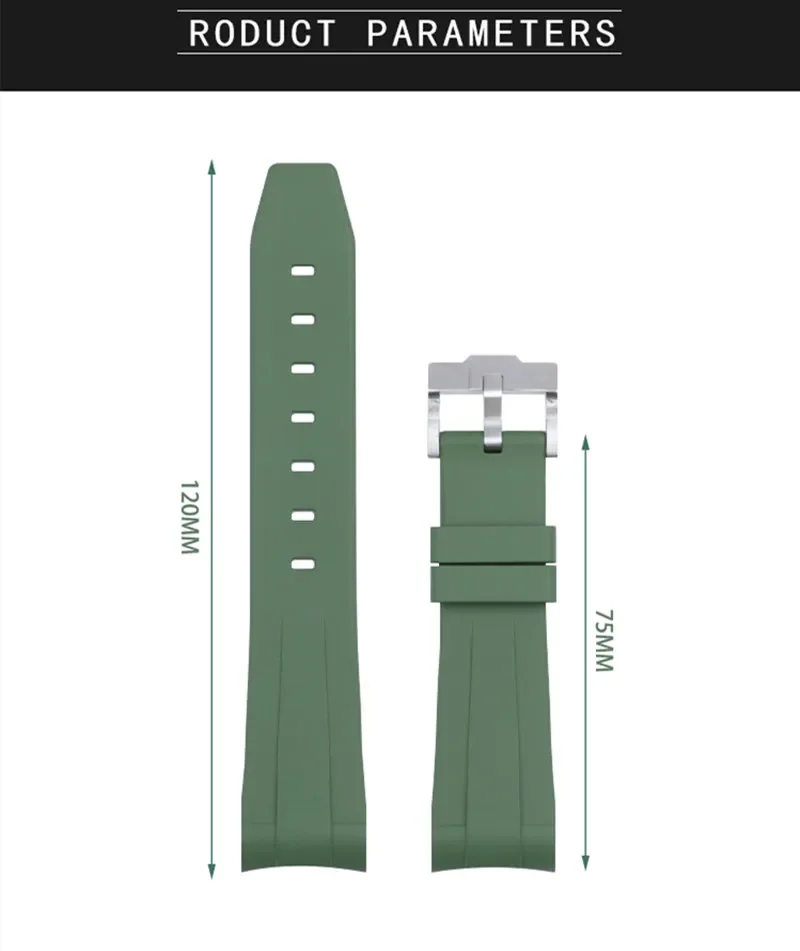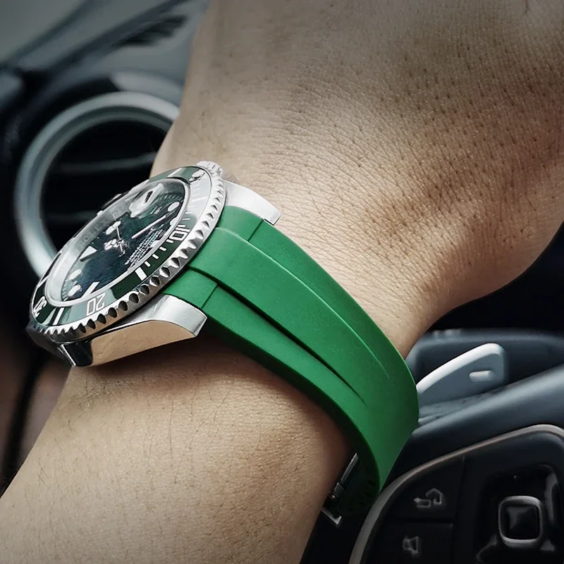 21mm extrémité incurvée souple plongée FKM fluorine caoutchouc bracelet de montre accessoires pour Rolex sangle pour 41mm Submariner Explorer 216570 Bracelet
