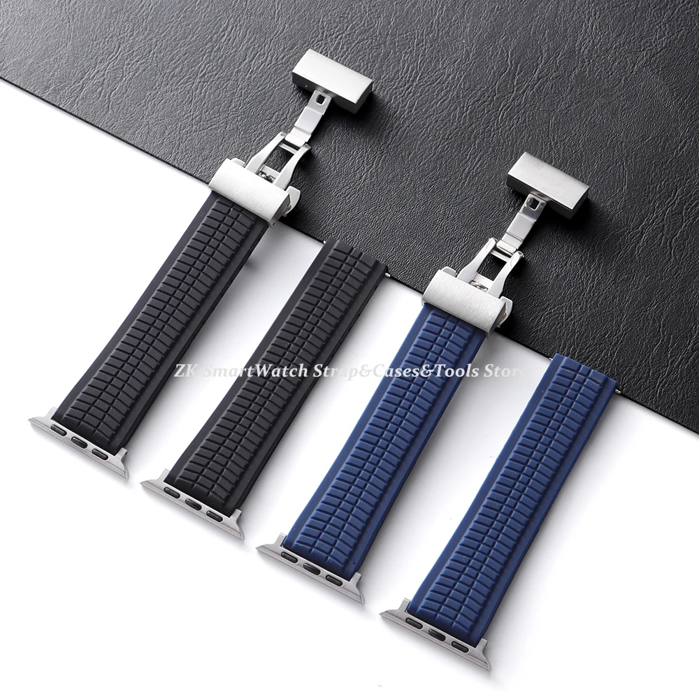 Bracelet de caoutchouc de luxe pour Apple Watch, 46mm 45mm 44mm 42mm, pour Iwatch Ultra 2 1 49mm série 10 9 8 7 Se 6 5 Se