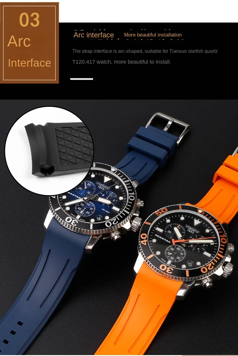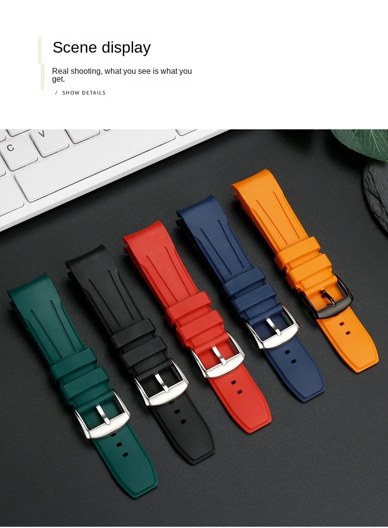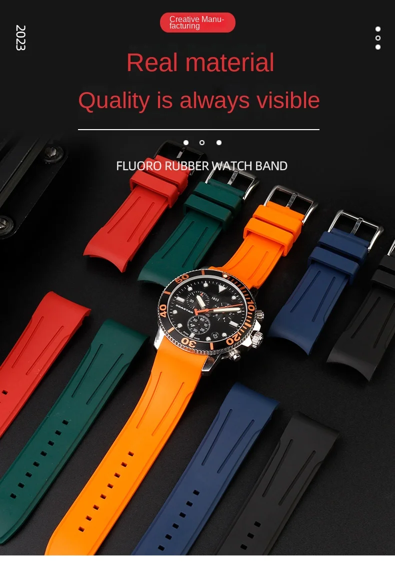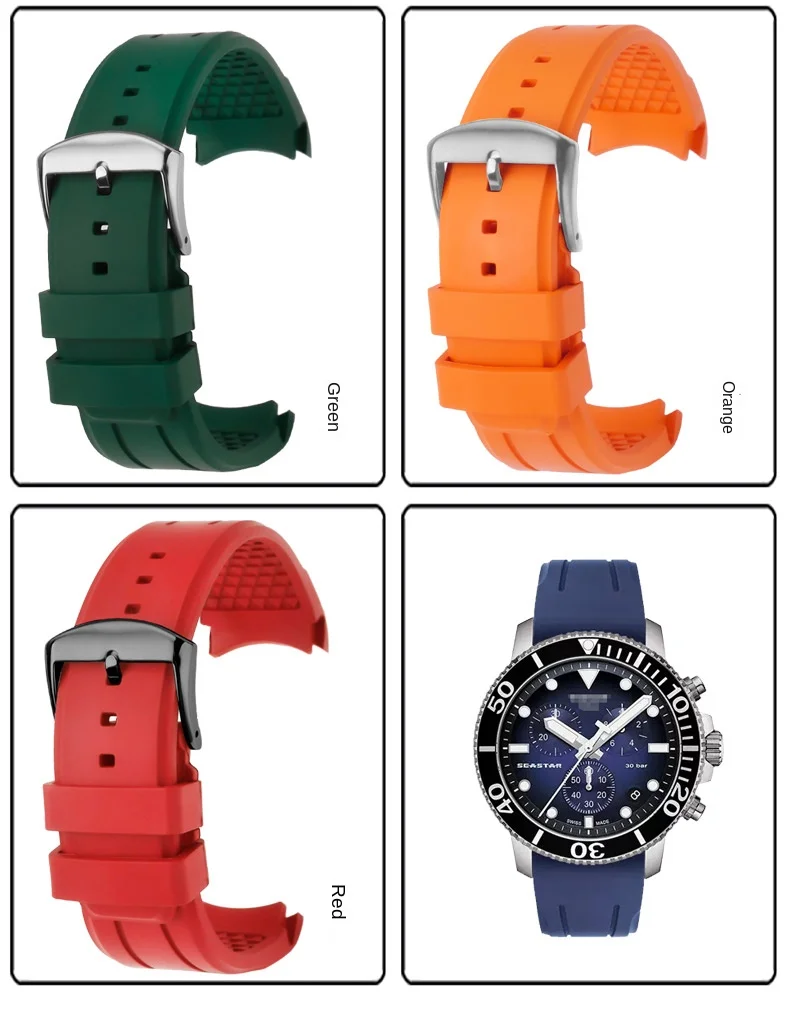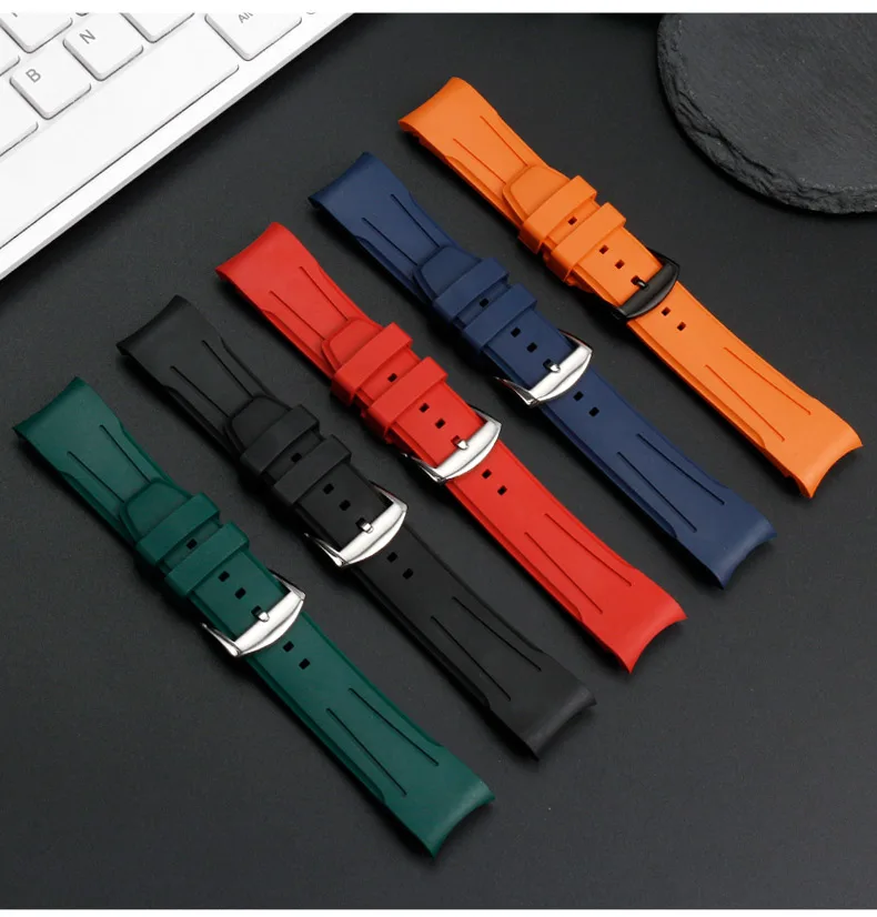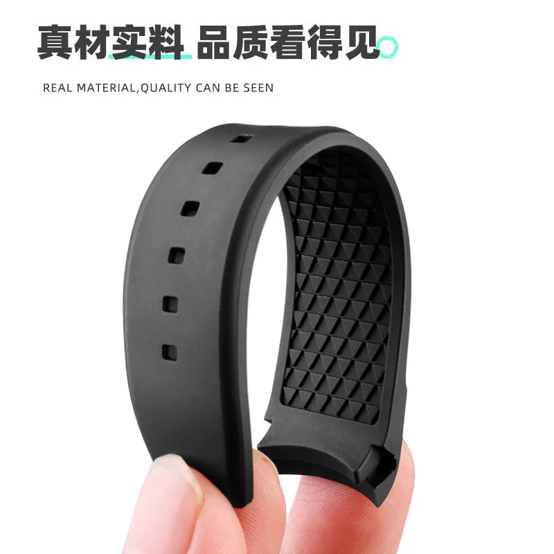Bracelet de montre en caoutchouc FKM incurvé de haute qualité, 20 22mm, pour seiko rolex tudor Tissot, bracelet de montre pour hommes, fermoir papillon