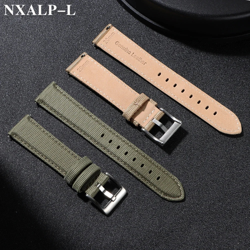 Bracelet de montre en cuir voile de qualité, 20mm 22mm, pour Seiko pour Omega, tissu en Nylon, accessoires de bracelet à dégagement rapide