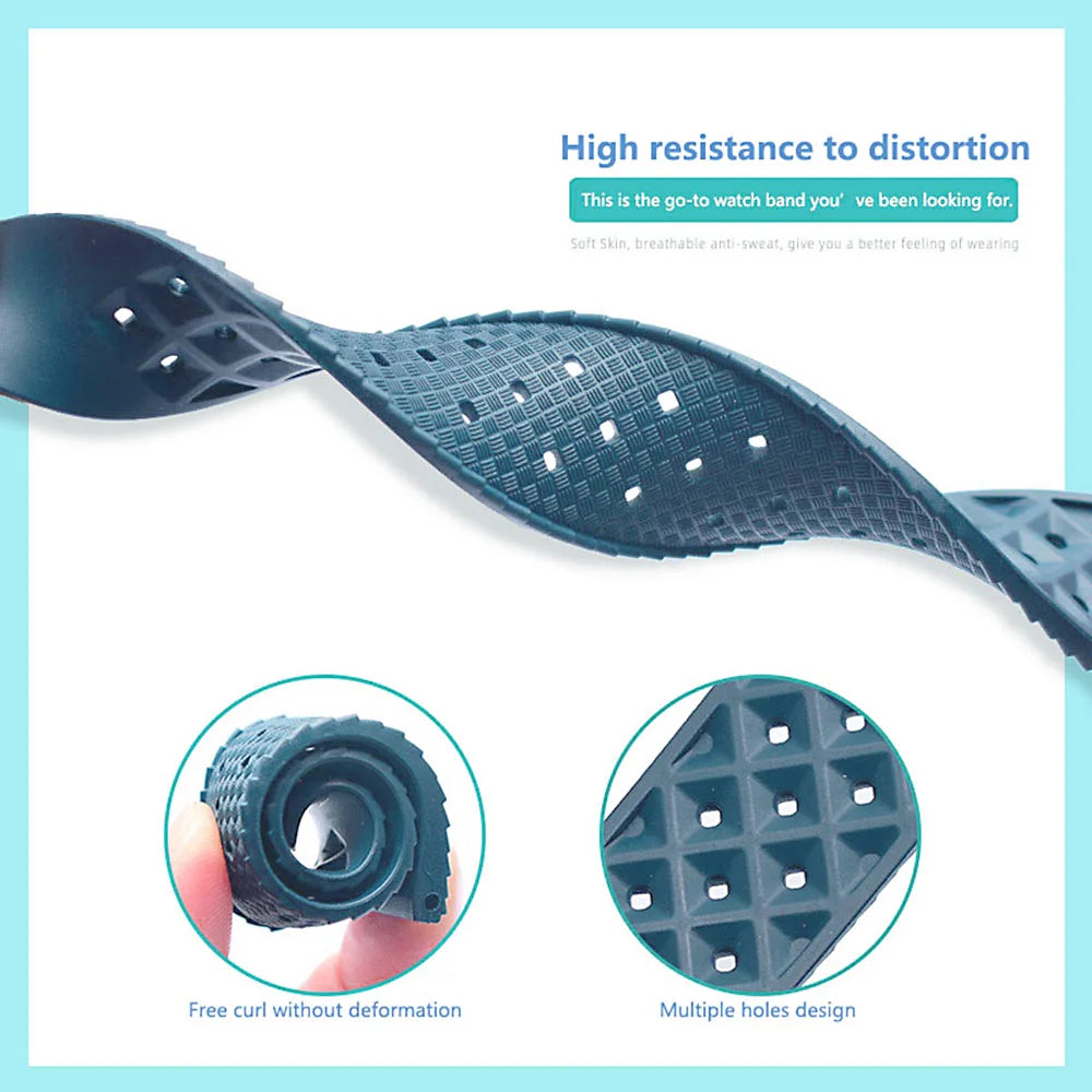 Ce bracelet de montre en caoutchouc est fabriqué en caoutchouc doux pour la peau, qui vous offre une expérience de port confortable.Il est résistant à la sueur et à l'eau, léger, doux et durable pour votre usage quotidien.