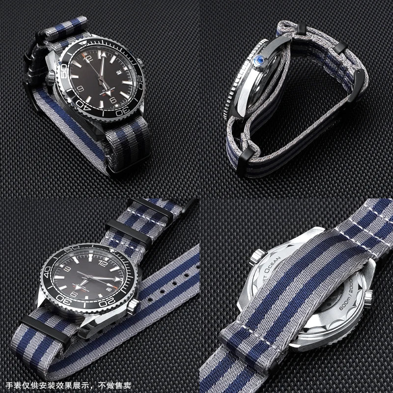 Bracelet de montre en Nylon pour Omega 007 pour Seamaster 300 Bracelet de montre en toile 18mm 20mm 22mm 24mm pour Seiko hommes Bracelet de Sport Bracelet