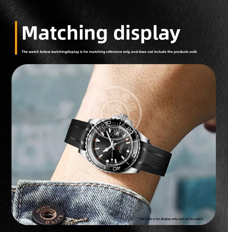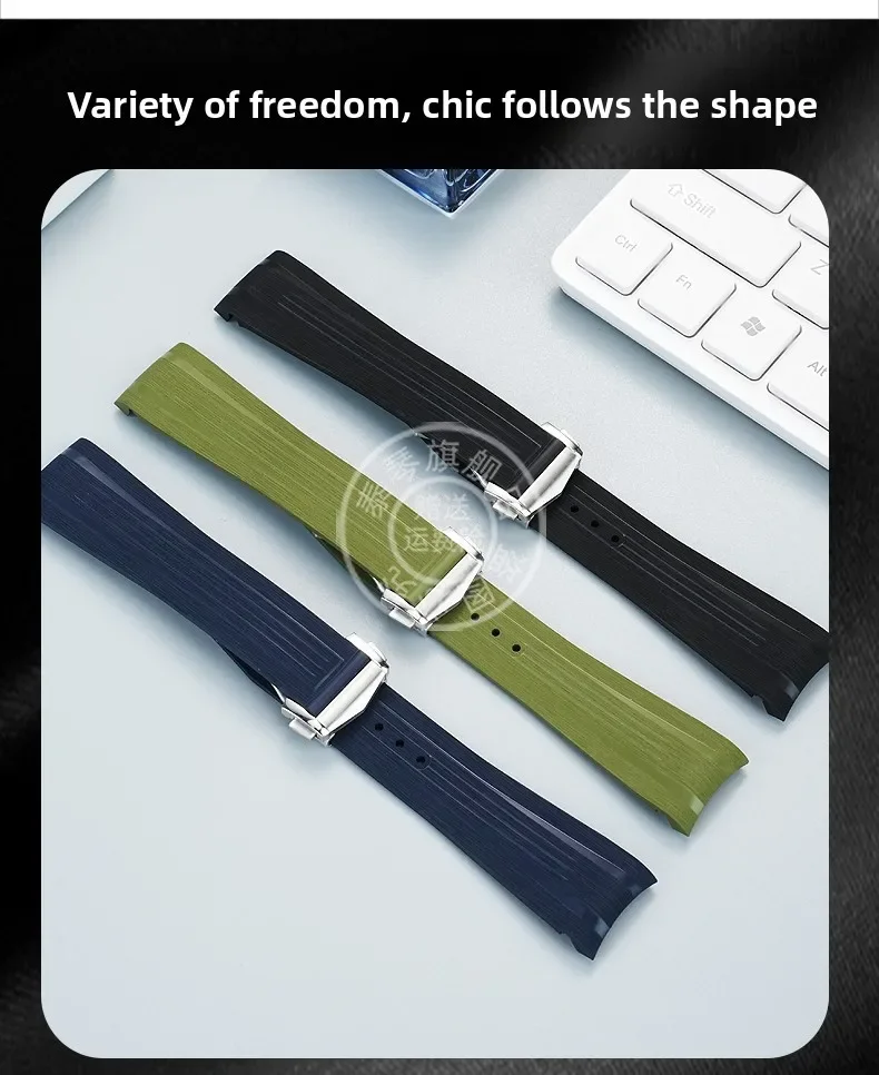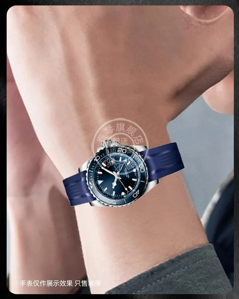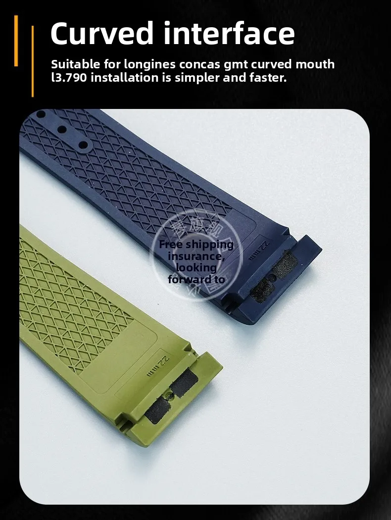 Bracelet en caoutchouc fluoré de haute qualité pour montre Longines Conquest GMT L3.890.4 L3.790.4 L3.830.4 bracelet de montre FKM à extrémité incurvée