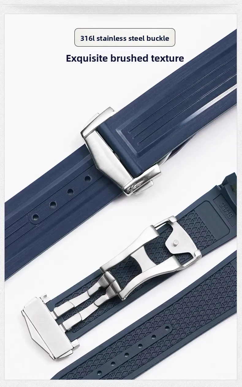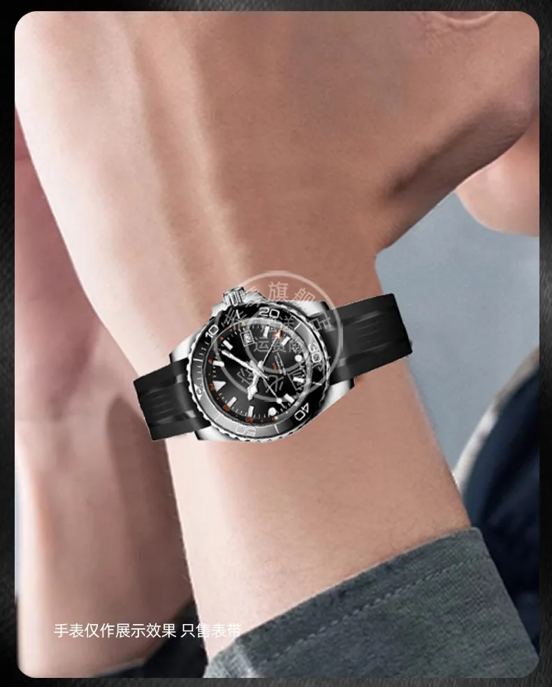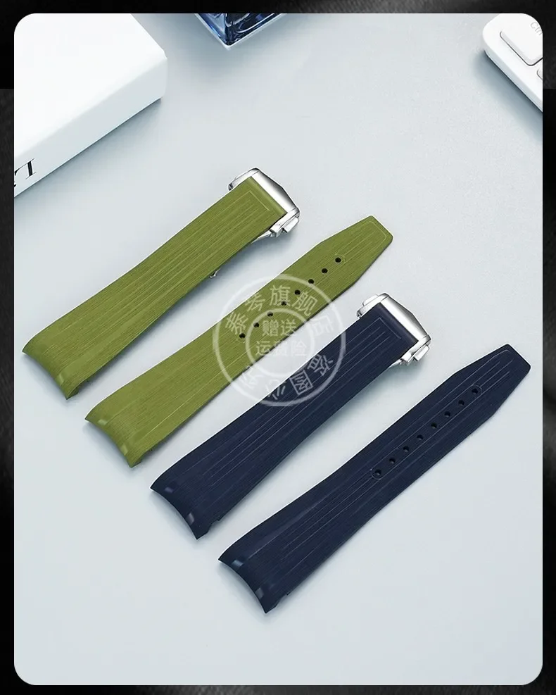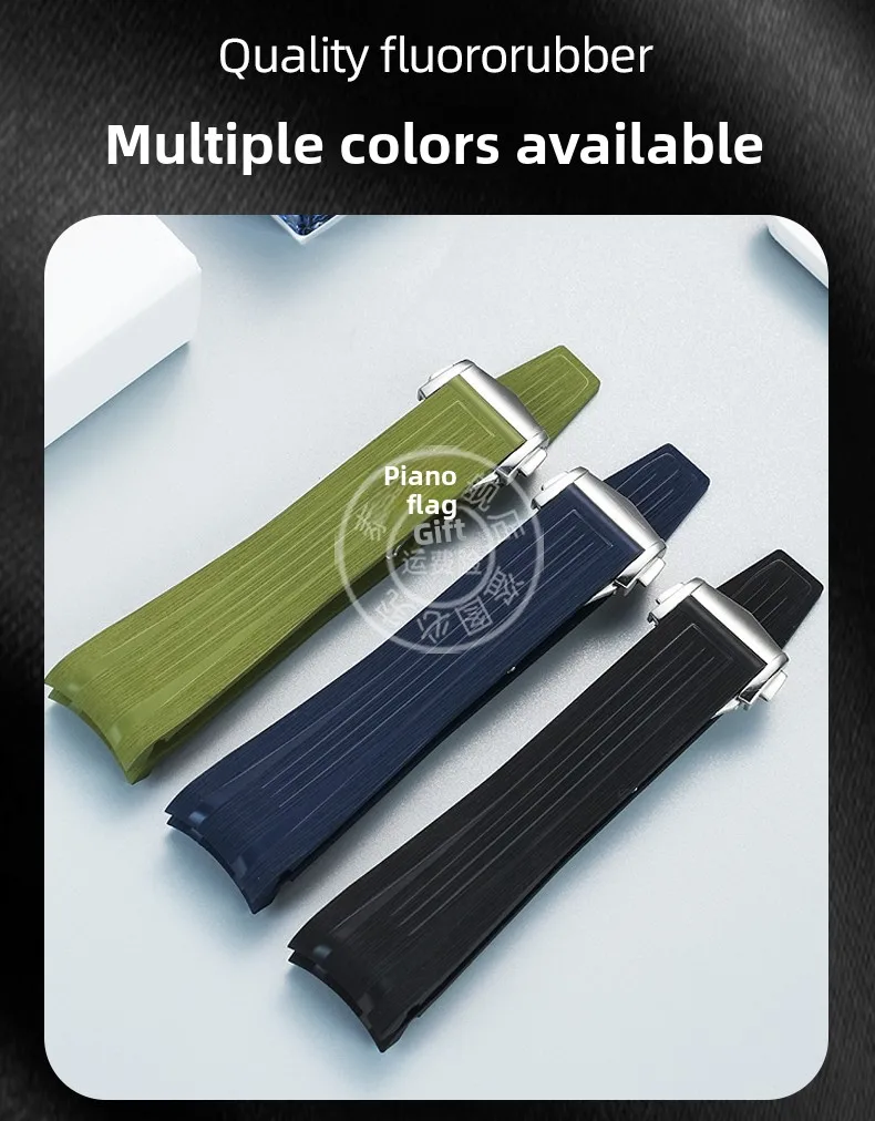 Bracelet en caoutchouc fluoré de haute qualité pour montre Longines Conquest GMT L3.890.4 L3.790.4 L3.830.4 bracelet de montre FKM à extrémité incurvée