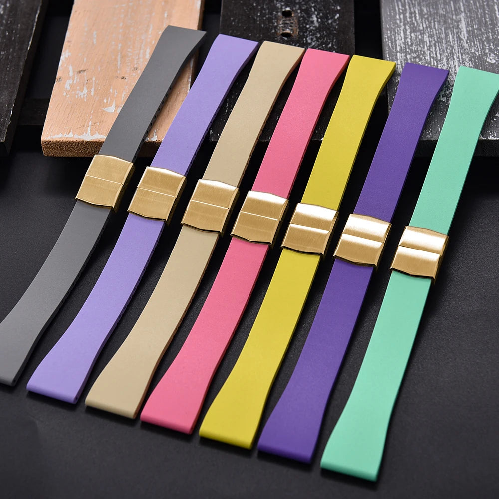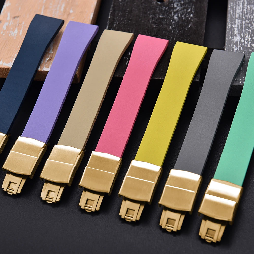 Nouveau bracelet de montre CTS FKM boucle en or papillon à dégagement rapide 16mm 18mm 19mm 20mm 21mm 22mm bracelets de montre en caoutchouc CTS pour couper à la taille