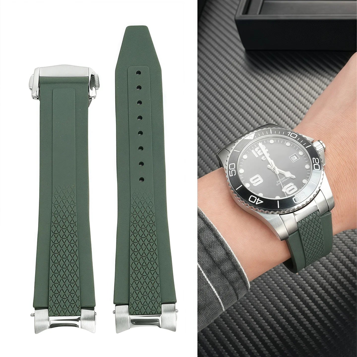 Nouveau bracelet de montre en caoutchouc fluoré hydroconquest L3.781/L3.883.4 bracelet de montre de sport Conquest + interface métallique 21mm